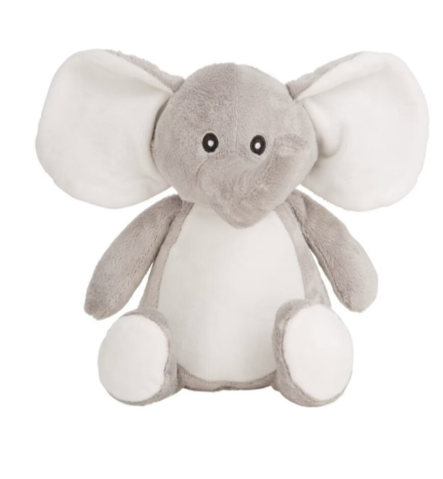 Peluche aux choix, lapin ou éléphant, avec flocage personnalisé aux détails de la naissance de bébé,